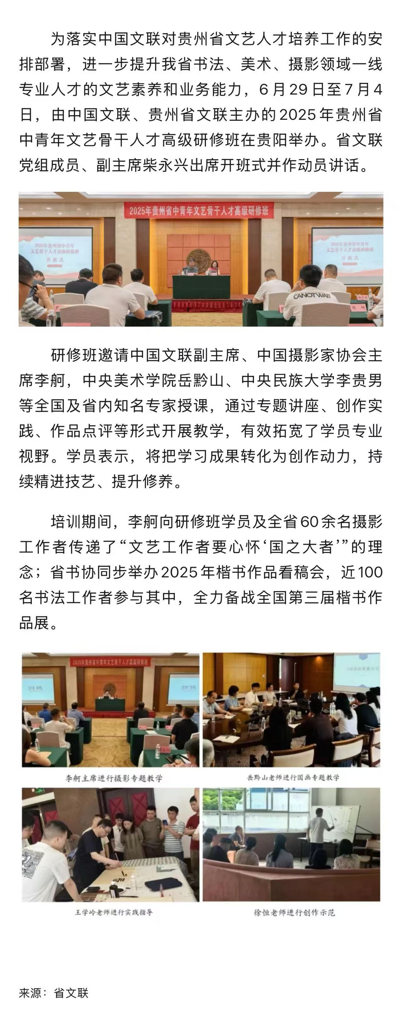 2025年贵州省中青年文艺骨干人才高级研修班在贵阳举办