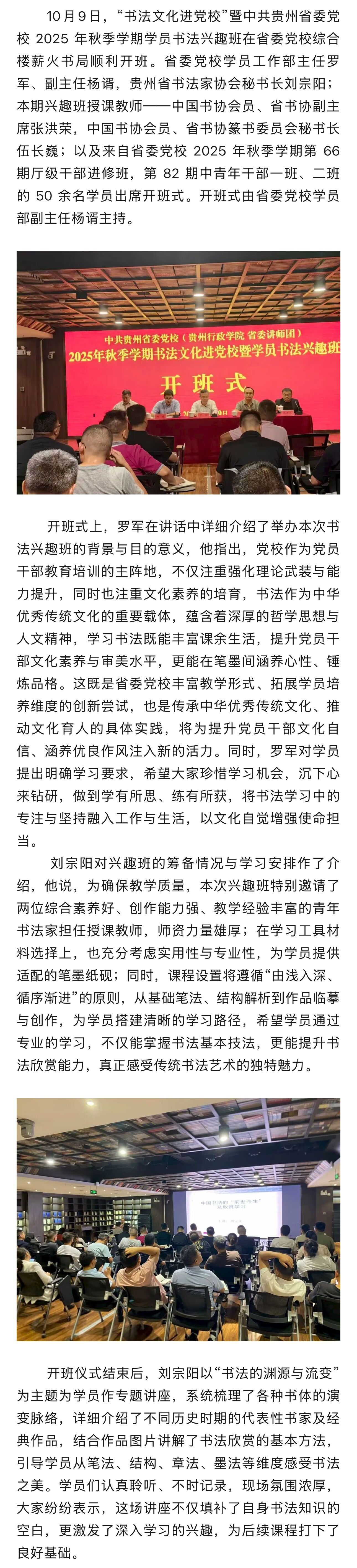 中共贵州省委党校 2025 年秋季学期学员书法兴趣班顺利开班