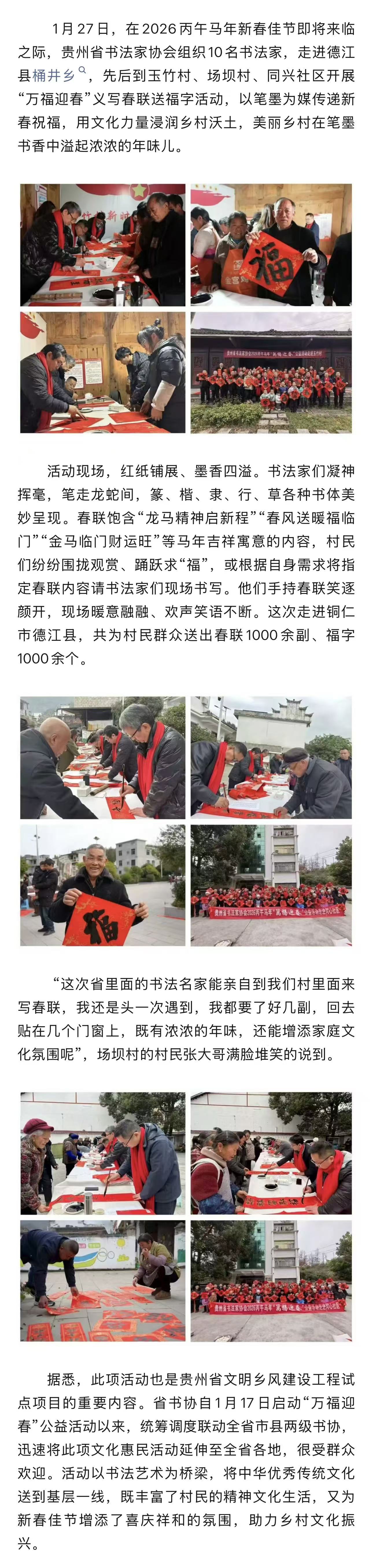 贵州省书协2026丙午马年“万福迎春”公益活动走进德江县桶井乡