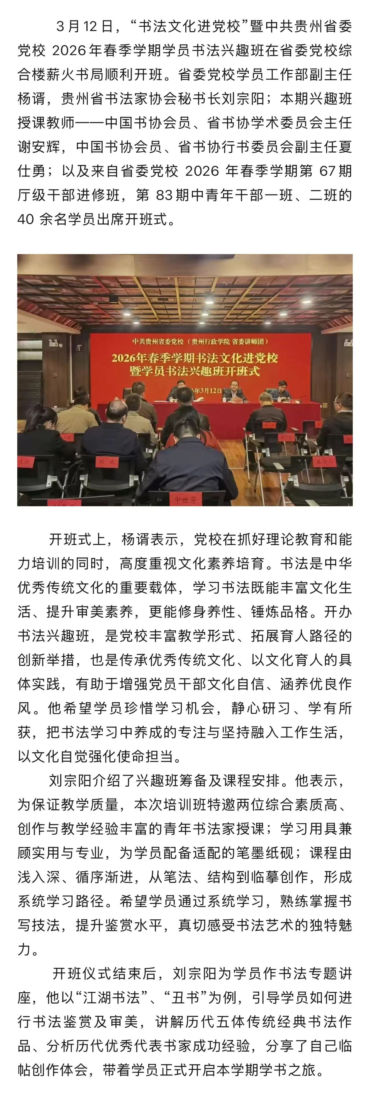 中共贵州省委党校 2026 年春季学期学员书法兴趣班顺利开班